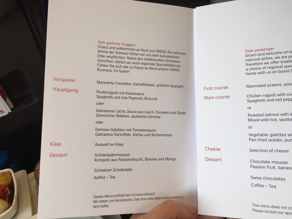 Der Maitre de Cabine, sowie eine zweite Flugbegleiterin waren ausschließlich für die Business Class zuständig auf diesem Flug. Neben der namentlichen Begrüßung aller Passagiere, wurde das Menü des heutigen Fluges verteilt.