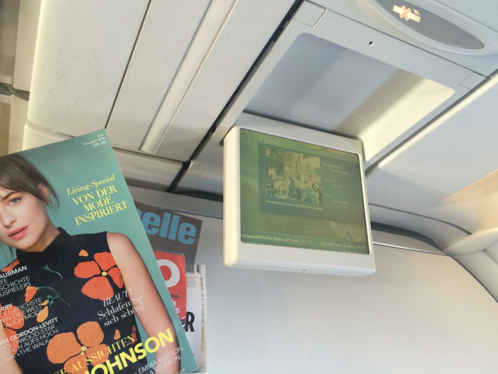 In Reihe 1 hat man leider auch nicht besonders viel Beinfreiheit. Auf den Gangplätze kann man zwar wie ich seine Beine frech nach vorne strecken, allerdings streckt man sie so auch schon fast mitten in die Galley. Nicht wirklich optimal.