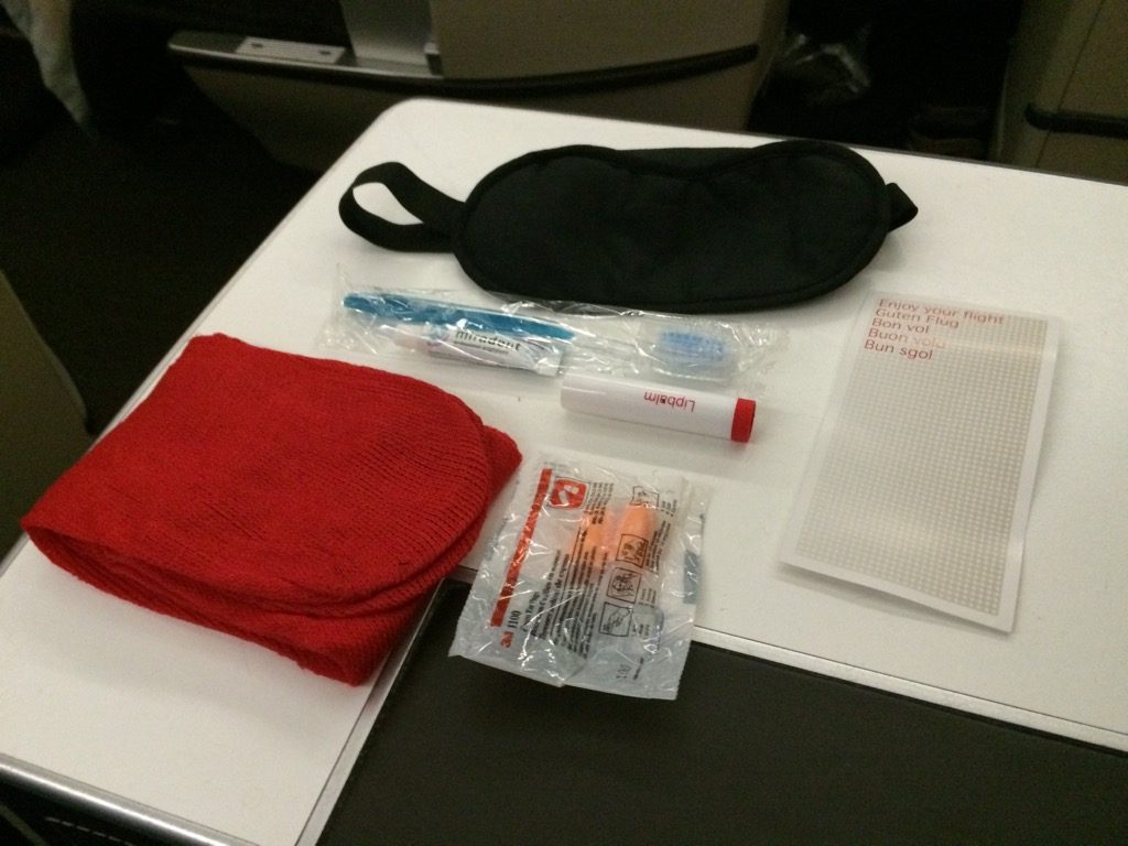 Das Amenity Kit lag bereits auf dem Sitz bereit. Der Inhalt war eher Basic, allerdings bot es alles, was man für den Flug benötigt. Gut finde ich bei Swiss die Karten, welche darauf hinweisen, dass die Flugbegleiter auch zusätzlich Amenitys auf Anfrage haben, wie z.B. ein Rasierset.