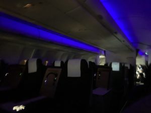 Das Entertainment System war nicht aktiviert, die Monitore wurden aber für den Sicherheitsfilm und die Airshow genutzt. Die First Class blieb auf dem Flug leer, beim Check-In wurde diese als als Teil der Business Class angezeigt. Die Sitze waren allerdings geblockt.
