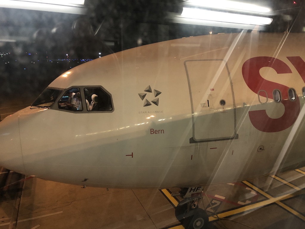 Das Gate der Swiss war etwas weiter entfernt, daher sind wir rechtzeitig vor dem Boarding los. Der Einsteigevorgang lief bereits, es war jedoch etwas chaotisch. Niemand wusste genau welche Gruppe jetzt boarden darf, manche Gäste wurden vom Personal wieder zurückgeschickt.