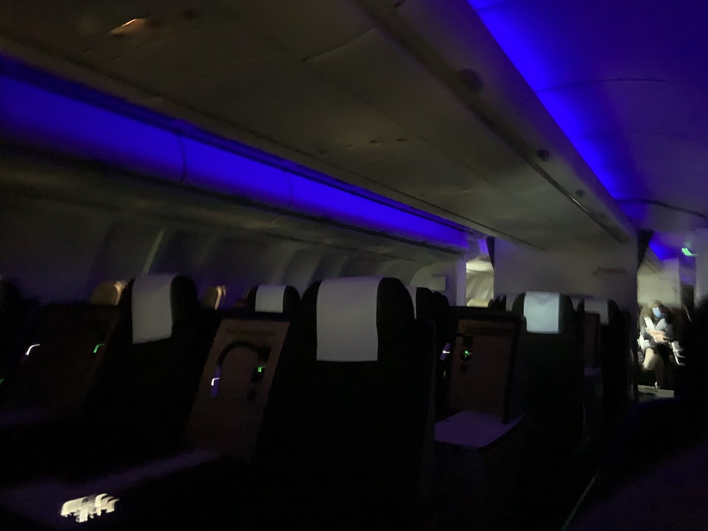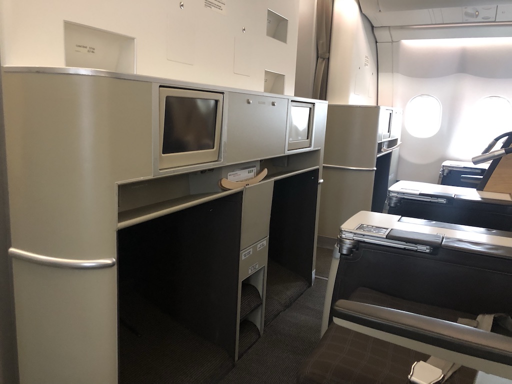 Das kleine Abteil ist direkt hinter der First Class und besteht nur aus zwei Reihen. Dort gab es nur noch einen freien Doppelsitz in der Mitte, daher wählten wir 7A und 7B im hinteren, etwas größeren Compartment.