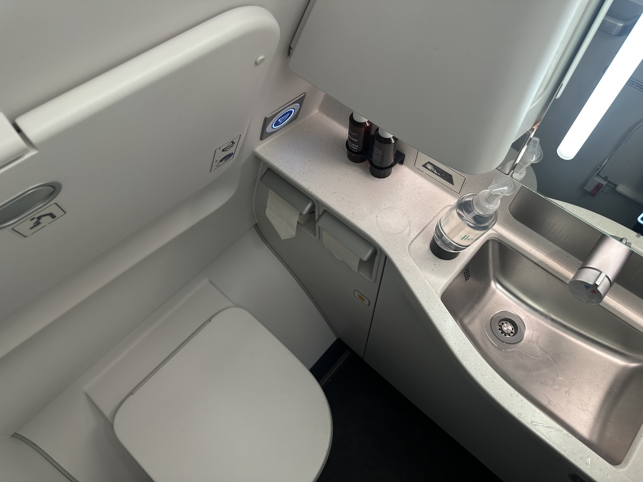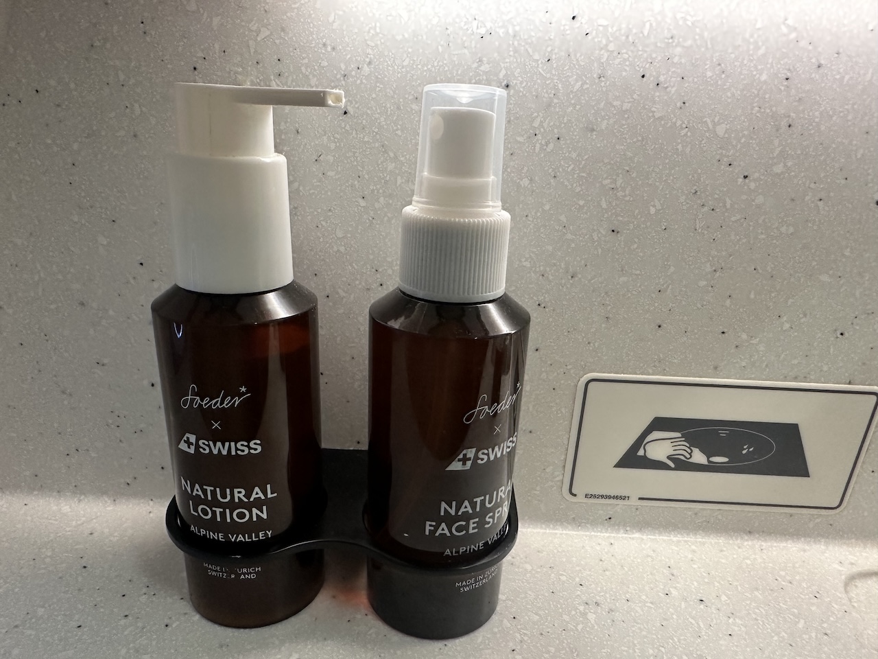 In den Waschräumen bietet SWISS auch auf den Kurzstrecken eine Bodylotion und Feuchtigkeitsspray an.