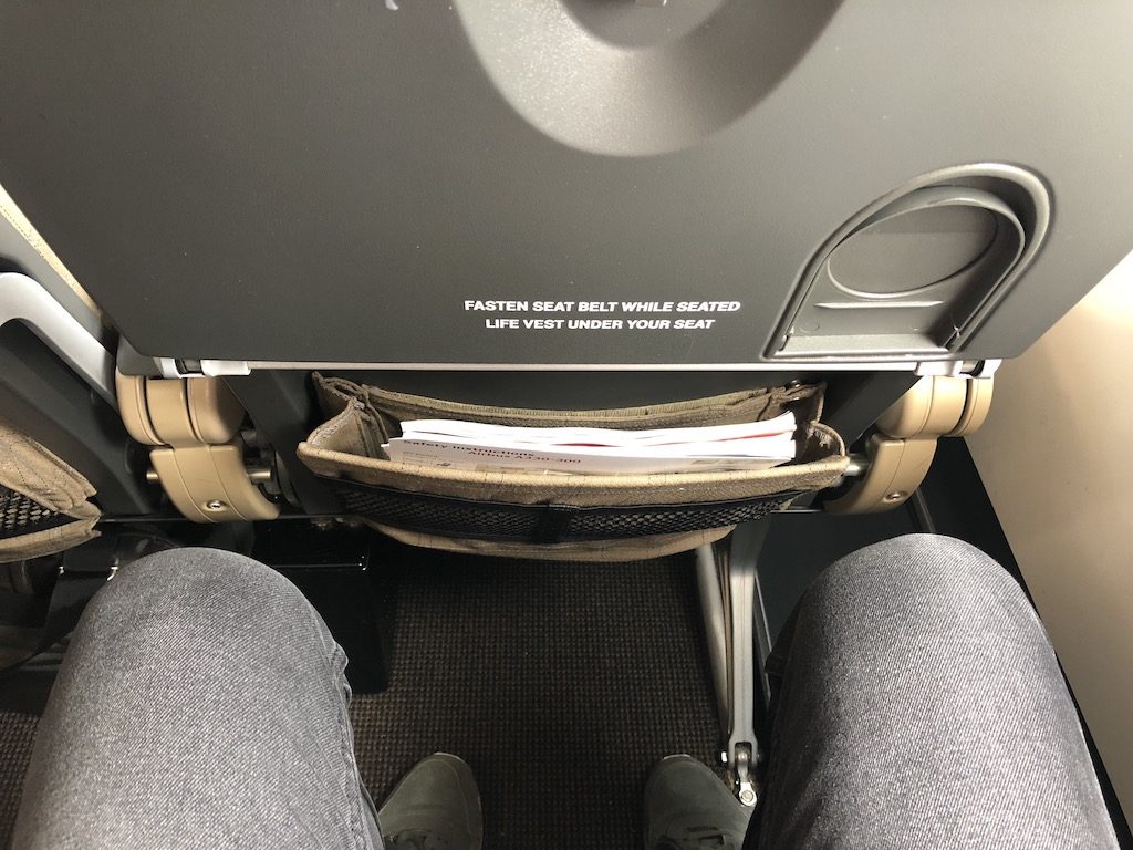 Für meinen Flug konnte ich beim Online-Check-In kostenfrei einen Sitzplatz in der Notausgangsreihe am Fenster (Seat 29K) auswählen. Dieser verfügt über ein sehr großes Platzangebot im Fußraum. Jedoch wird hier in meinen Augen der Sitzkomfort etwas durch die in der Tür installierte Evakuierungsrutsche beeinträchtigt. Da mein Nebensitz leider belegt war, im hinteren Teil jedoch zahlreiche freie Sitzplätze zur Verfügung standen, entschied ich mich, auf einen „normalen“ Sitzplatz am Fenster zu wechseln, um hier die Vorzüge des freien Nebensitzes zu genießen. Der Sitzabstand war hier für eine Langstreckenbestuhlung völlig in Ordnung.