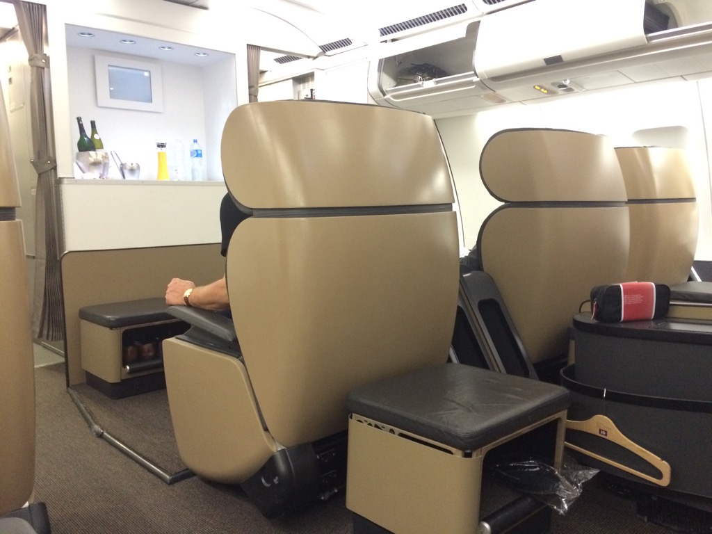Ich habe ich mich für Sitz 2A entschieden. Da ich alleine unterwegs war, war ein Einzelsitz für mich die logische Wahl. Was natürlich auffällt ist, dass man bei dem First Class Sitz im Airbus A340-300 kaum Sichtschutz zur Kabine hat.