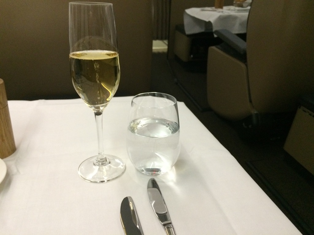 Ich kann nicht genug positives über die First Class Crew dieses Fluges sagen. Die zwei Damen waren freundlich, herzlich, schnell, professionell und immer zur Stelle. Schon an der Flugzeugtür wurde ich von beiden mit Namen begrüßt und mein Mantel in meinem Arm wurde mir direkt abgenommen, während man mich zu meinem Sitz begleitete. Kaum hatte ich mein Handgepäck verstaut und Platz genommen wurde mir auch schon ein Getränk angeboten.