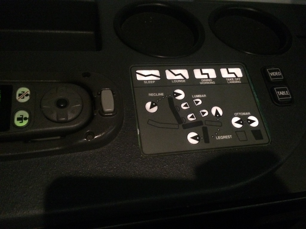 In der Seitenkonsole des Sitzes findet man neben dem Tisch und der Sitzverstellung auch noch einige Ablagen. Auch wenn es nicht viele Ablagen sind, hatte ich nie Probleme, alles was ich während des Fluges benötigte zu verstauen.