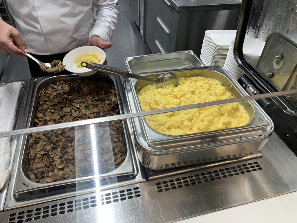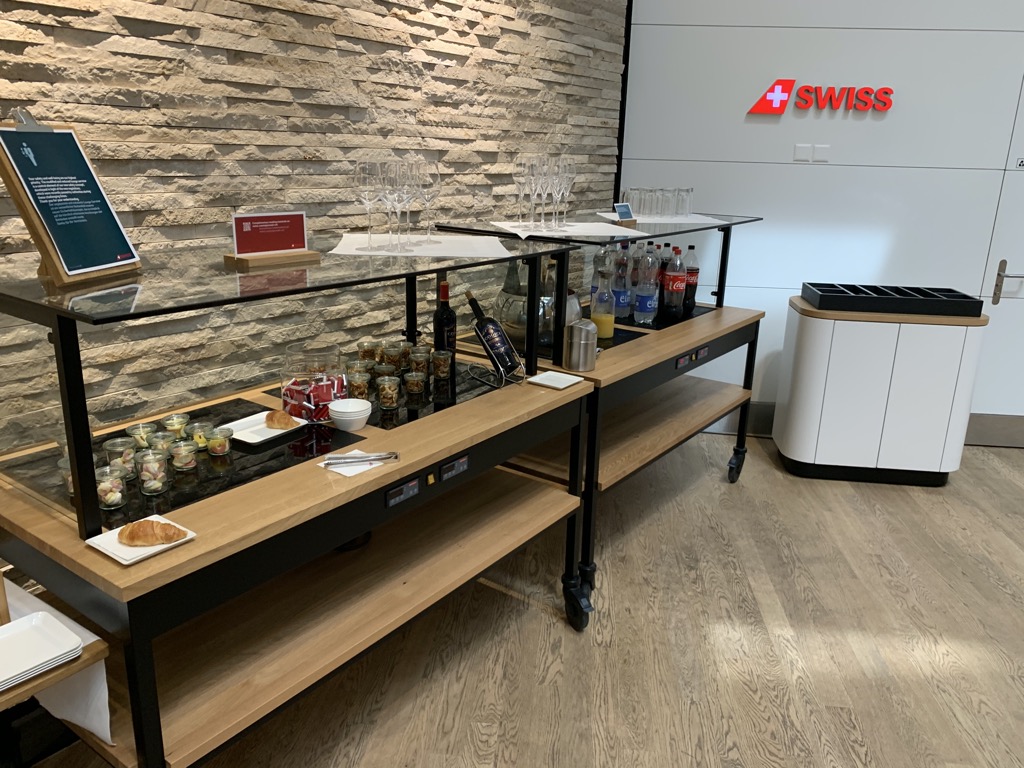 Swiss bot im oberen Bereich der Business Lounge ein umfassendes Buffetcatering an, an dem verschiedene kalte, warme, süße und deftige Speisen angeboten wurden. Auch von der First Class Area aus konnte man dort über eine Treppe oder einen Aufzug hingelangen und sich bedienen. Wir haben uns nur Kleinigkeiten am Buffet genommen, da wir auf dem Flug nach Zürich gegessen haben und uns im Flugzeug das vortreffliche Swiss Catering erwartete.