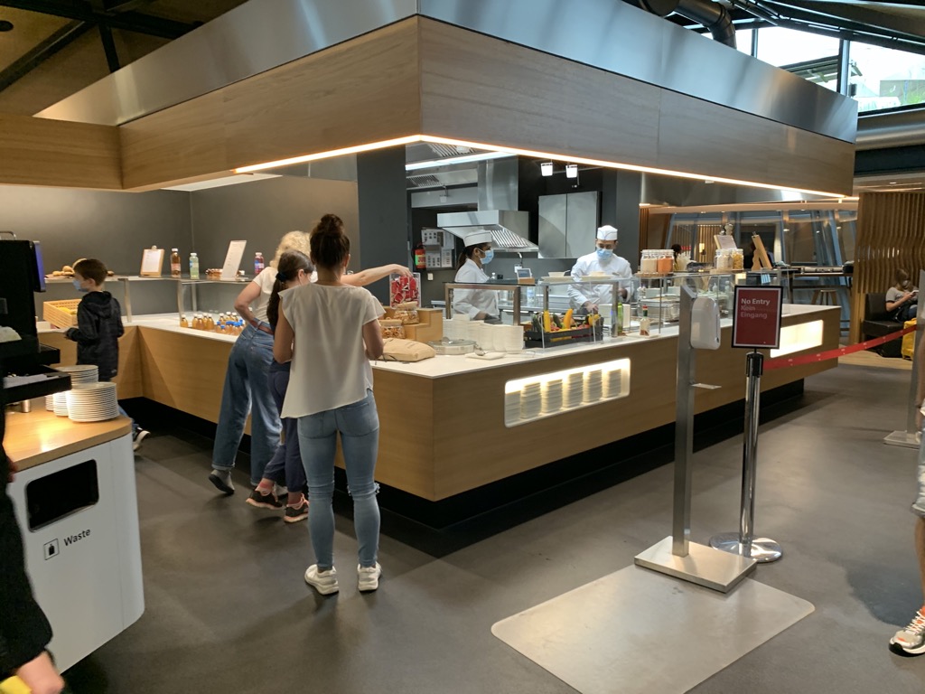 Die Swiss First Class Area befand sich in der zu dem Zeitpunkt einzigen geöffneten Swiss Lounge in Zürich. Hierbei war der Bereich direkt links neben dem Eingang im internen Bereich der vor Corona als Business Lounge genutzt wurde.