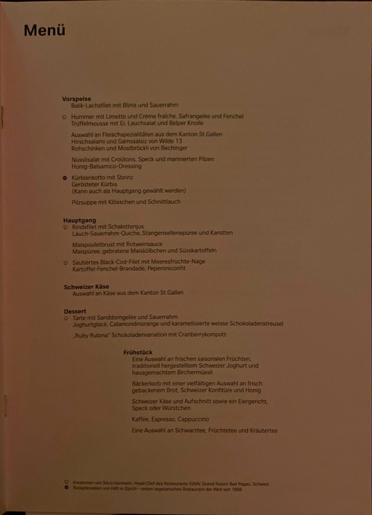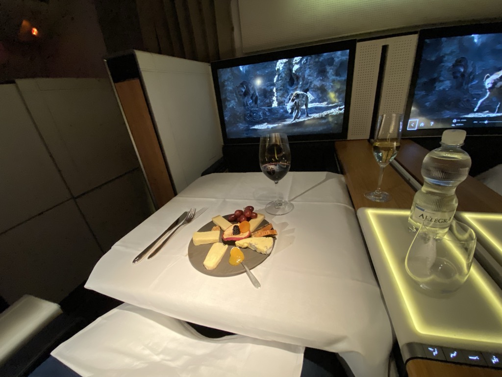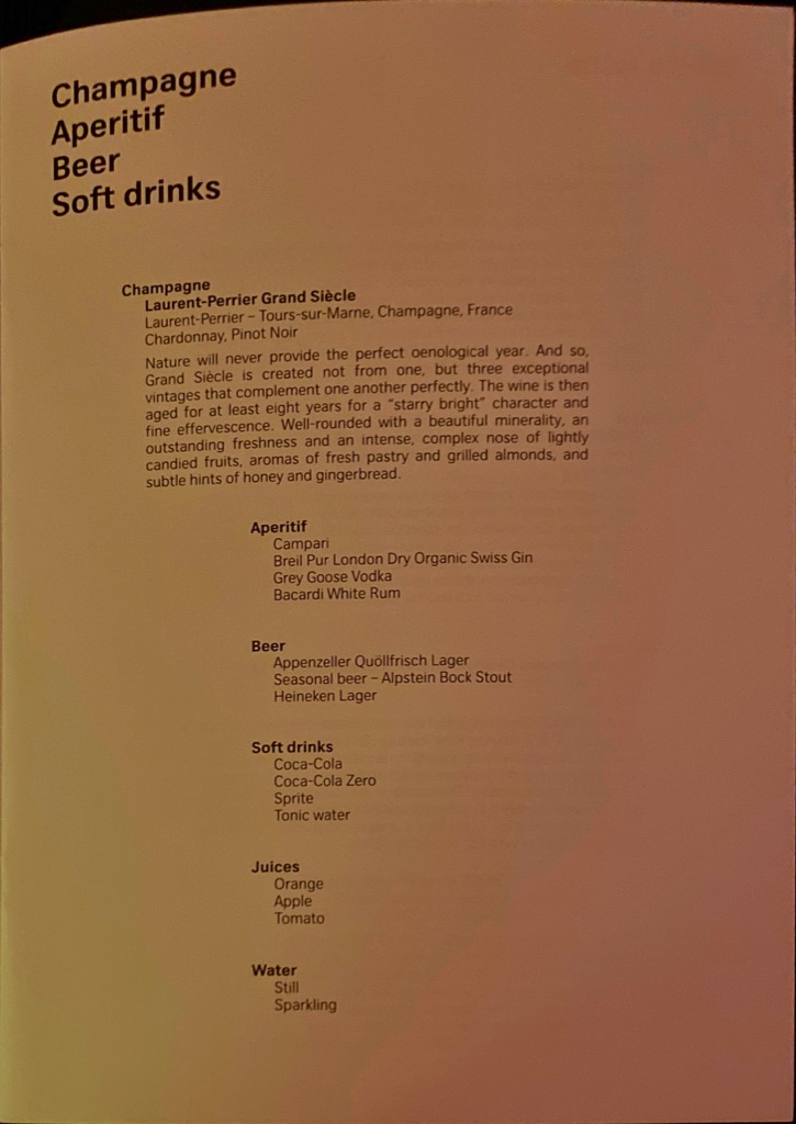 Bei unserem Flug sollte das leibliche Wohl auch nicht zu kurz kommen. Noch vor dem Start wurde uns ein Glas Champagner und ein Gruß aus der Küche angeboten. Wenige Minuten später wurden wir zum Menü beraten und durften unsere Bestellung aufgeben.