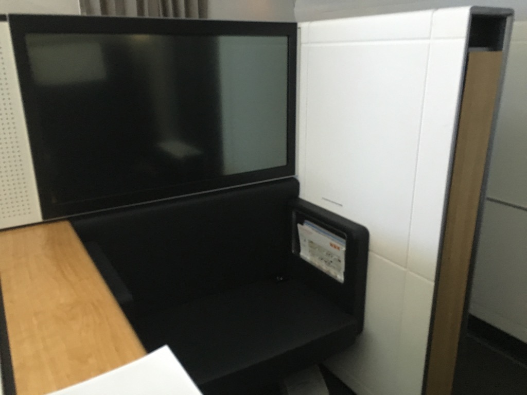 Wenn wir schon beim Essen sind, zum Sitz gehört ein, für Flugzeug-Verhältnisse, riesiger Tisch. Dieser lässt sich natürlich in der Nähe zum Sitz verstellen. Am und um den Sitz herum gibt es einige Installationen für Licht. So gibt es bei den Mittelsitzen in der Mitte beleuchtete Ablageflächen und am Kopfteil zum Beispiel eine Leselampe.