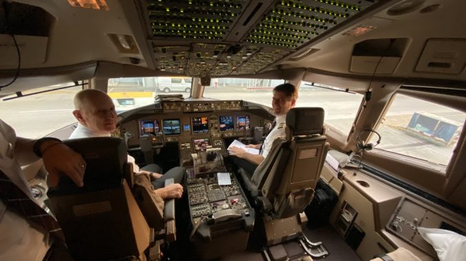 Krönender Abschluss des Fluges war natürlich ein Besuch im Cockpit, bei welchem wir uns für den tollen Flug bedankten.