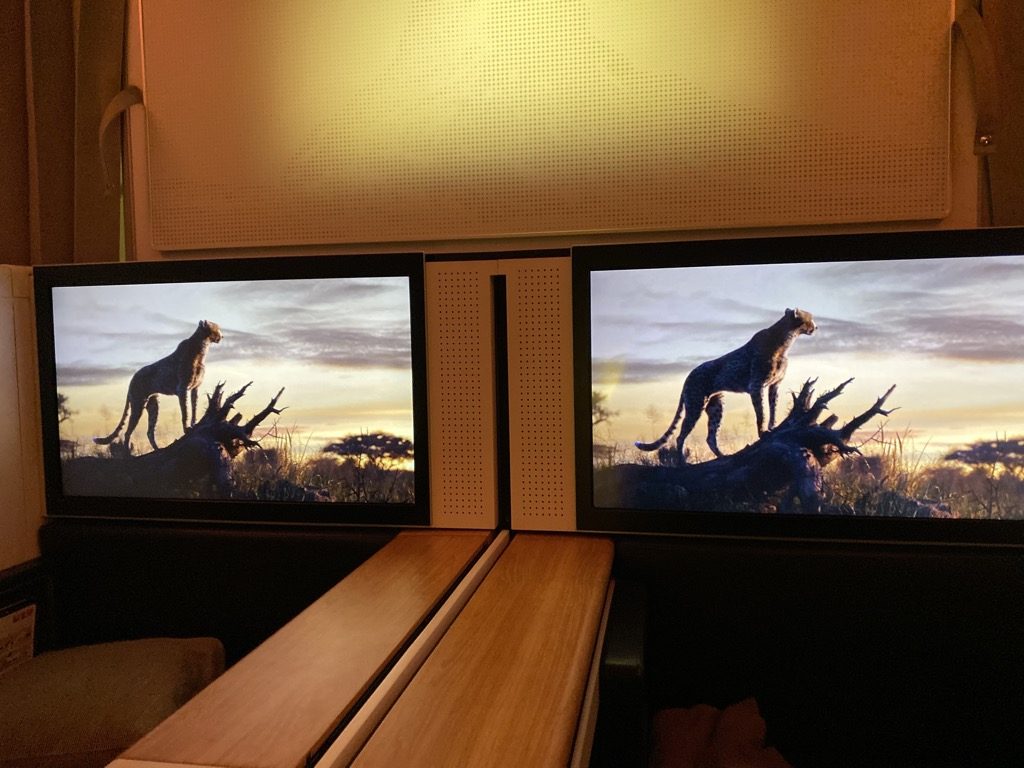Die First Class Kabine befindet sich im vordersten Bereich der Gesamtkabine und besteht aus insgesamt acht Sitzen, welche in einer 1-2-1 Konfiguration angeordnet sind. Wir nahmen auf den Mittelplätzen in Reihe 1 Platz. Normalerweise hätte ich einen Fenster- und einen Mittelplatz bevorzugt, zur Zeit unserer Buchung war dies allerdings nicht mehr möglich.