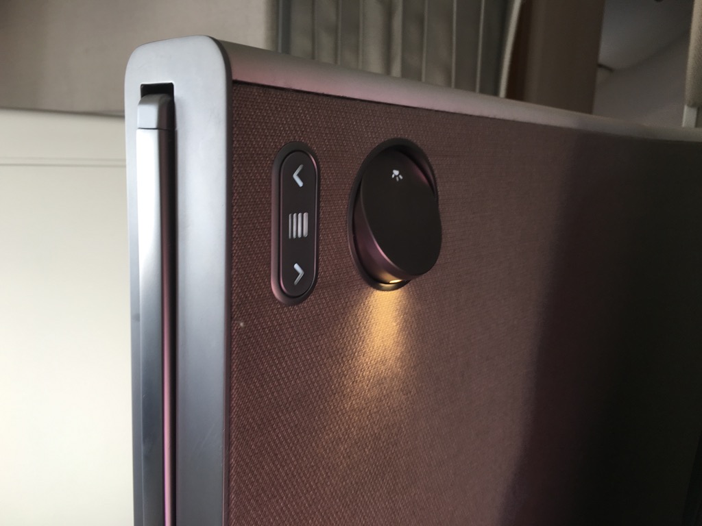Mit Hilfe dieser Fächer lässt sich der Swiss First Class Sitz komplett abschirmen. Allerdings kommt hierbei kein Suitefeeling auf, da die Wände doch sehr niedrig sind.