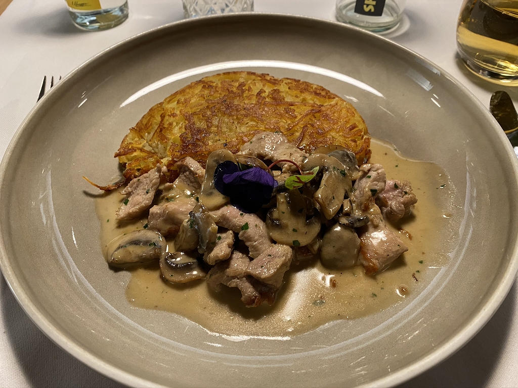 Mit einem Caesar-Salad gefolgt von Züricher Geschnetzeltem und einem kombinierten Wein- und Gintasting mit dem sehr aufgeweckten Kellner und den Gästen vom Nachbartisch, verging die Zeit erneut viel zu schnell und gegen 22:15 Uhr hieß es für mich: Boarding. Angenehmer habe ich noch nie mehrere Stunden am Flughafen verbracht und ich kann Euch nur empfehlen minimum vier Stunden Transferzeit einzuplanen.