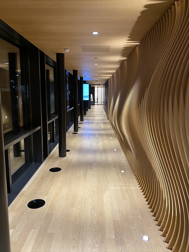 Angekommen in der Swiss First Class Lounge im Terminal E wollte ich etwas Essen und bog hinter dem riesigen Weinhumidor nach links in den Dining-Bereich ab. Dieser hat mich ebenso wie die Lounge selbst mit ihrem schlichten und sehr hochwertigen Design nachhaltig beeindruckt.