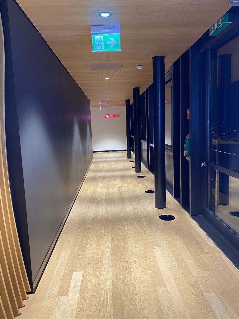 Noch mit den netten Worten des Pursers im Ohr, begab ich mich auf die Suche nach der Swiss First Class Lounge im Terminal A. Diese liegt gut versteckt hinter einer unscheinbaren Tür und einem darauffolgenden Gang.