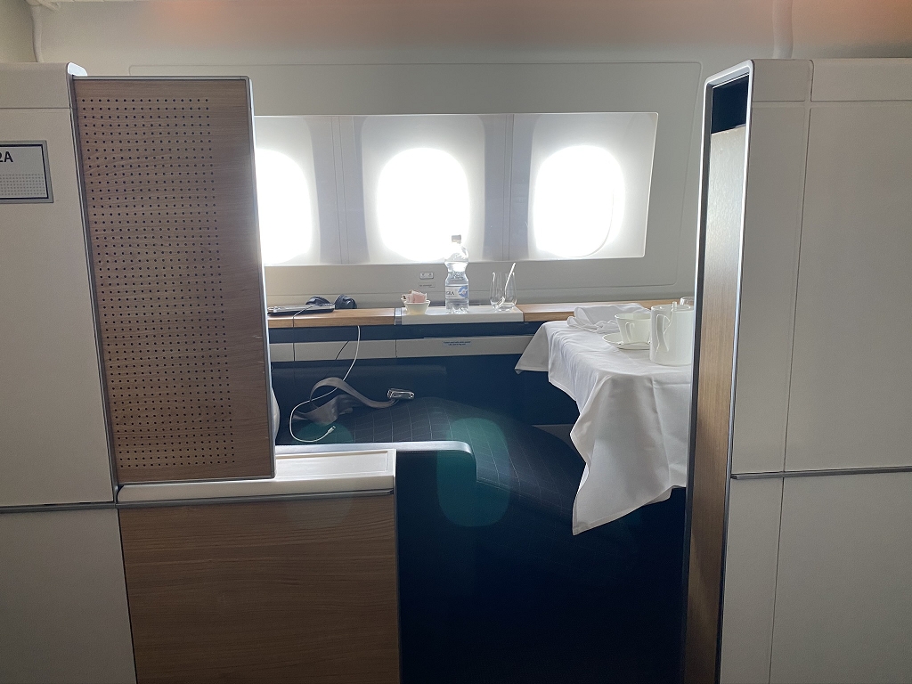 Von den acht Semi-Suiten, welche in einem 1-2-1 Layout angeordnet waren, blieben 2D und G frei. Somit versprach es ein noch entspannterer Flug zu werden, da mein „Nachbarsitz“ frei blieb.