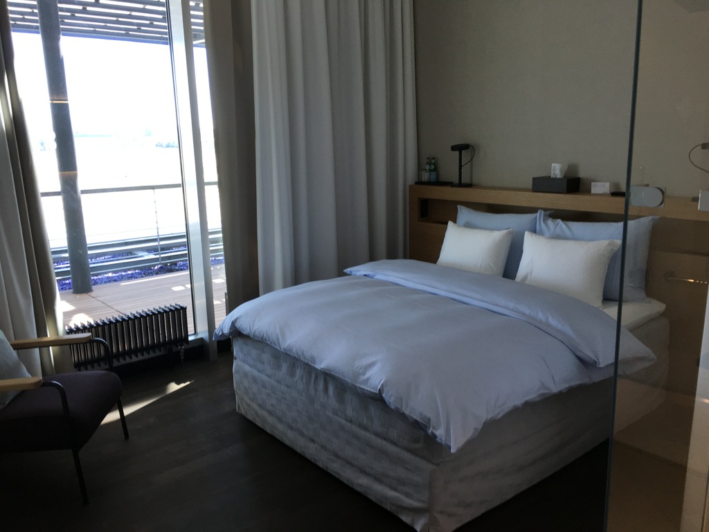 Neben dem großen Bett, verfügen die Day Rooms auch über einen Fernseher sowie ein vollständig ausgestattetes Bad. Eines der beiden Zimmer ist auch behindertengerecht ausgestattet. Kleine Details wie die bereitstehenden Wasserflaschen und der Radiowecker auf dem Nachttisch lassen den Dayroom wirklich wie ein Hotelzimmer wirken. Allerdings wohl ein Hotelzimmer mit dem besten Vorfeldblick der Welt.