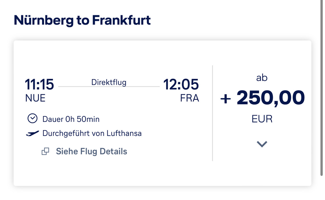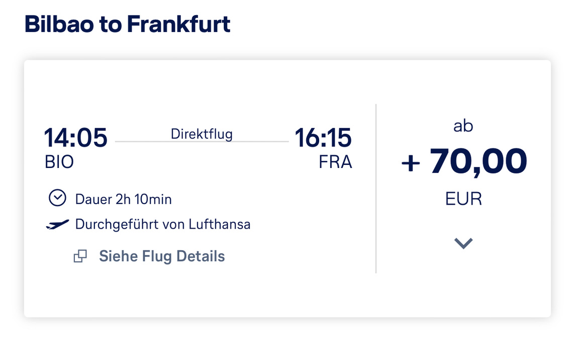 Das Ticket mit Start in Nürnberg und Rückflug ab Bilbao habe ich direkt bei Lufthansa gebucht. Durch eine Änderung in der Buchung durfte ich die Flüge noch einmal kurzfristig anpassen und nach meinen Wünschen ändern. Der Trip hat etwa 160€ gekostet, Upgrades wurden für jedes Teilstück verkauft, die Preise lagen bei 60-320€ pro Flug.