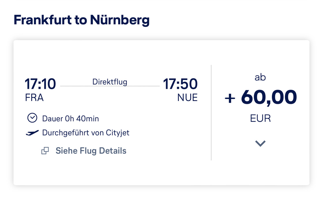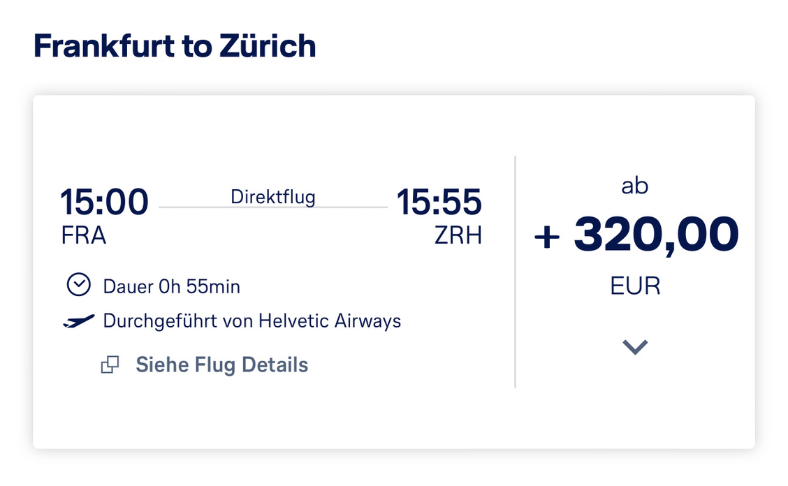 SWISS operated by helvetic Business Class von Frankfurt (FRA) nach Zürich (ZRH) | Buchung