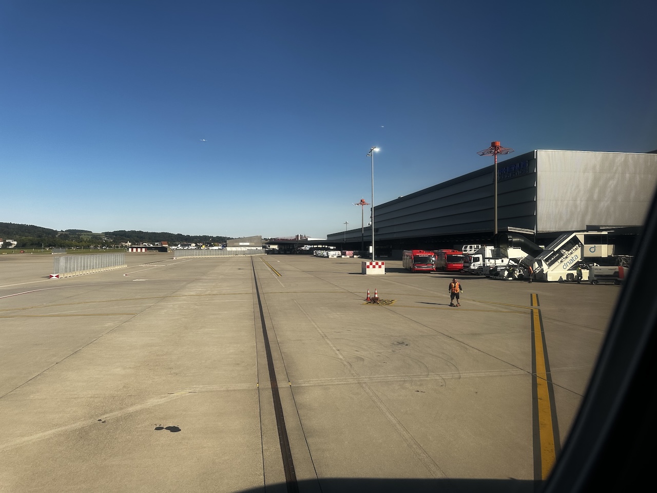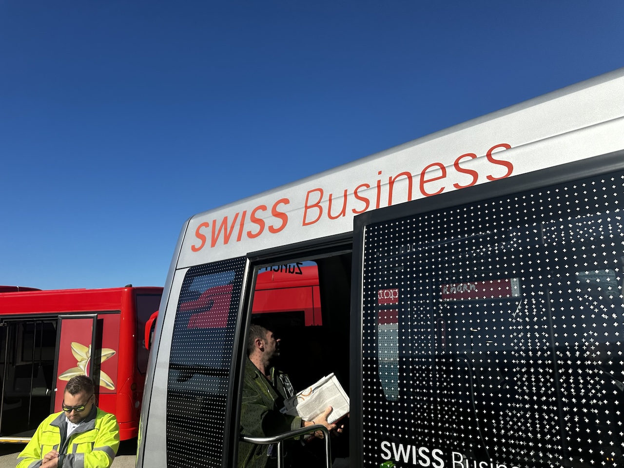 Im Sinkflug gab es noch ein paar Details zu den Anschlussflügen, die alle erreicht werden sollten. Bei der Ankunft in Zürich wurden die Passagiere der Business Class mit einem gesonderten Bus an der Außenposition abgeholt.