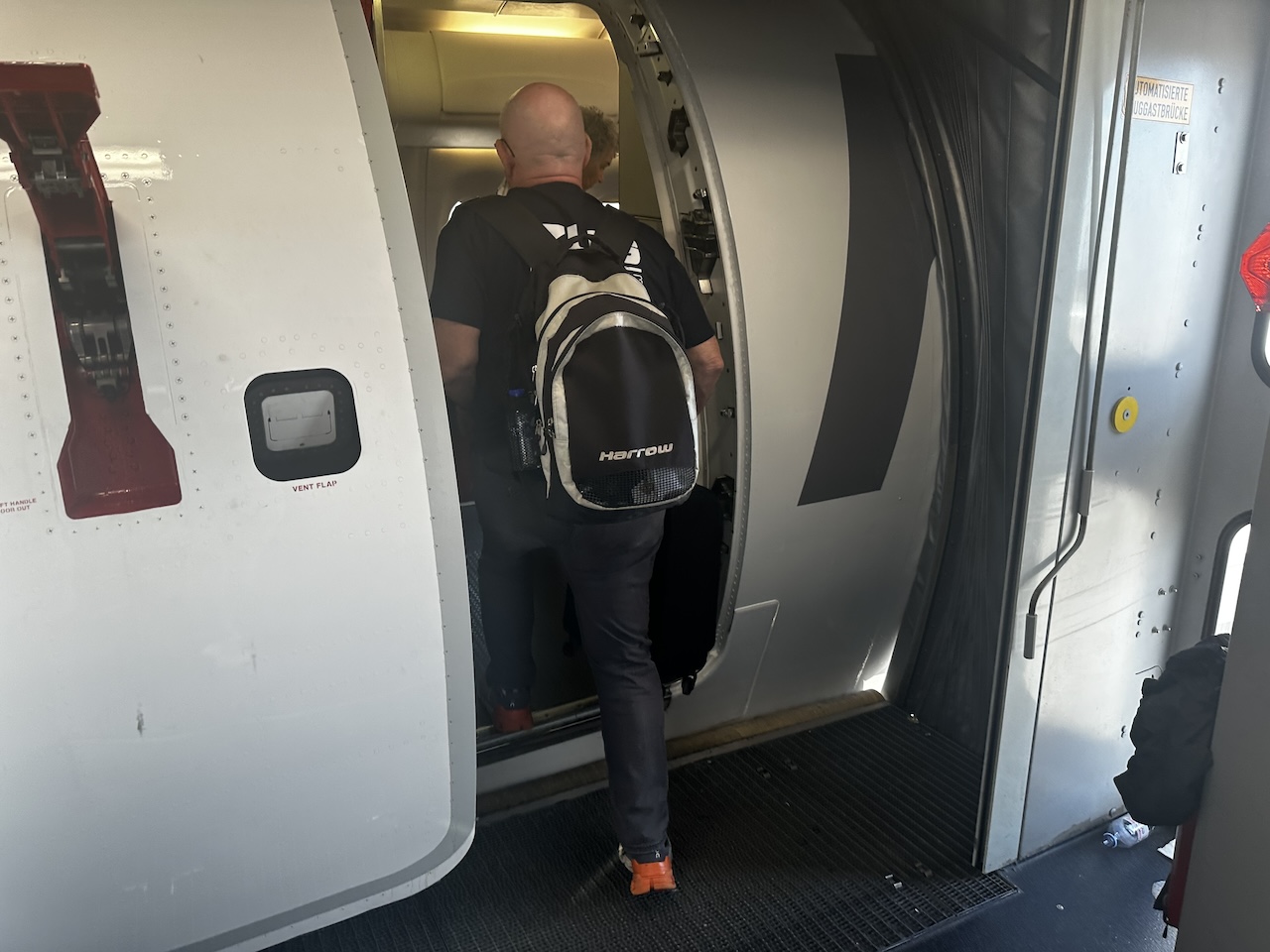Eine Dame sorgte dafür, dass die Gruppen beim Boarding eingehalten wurden. Rigoros wurden Gäste mit der falschen Gruppe weggeschickt, das sorgte bei einigen Kunden für Kopfschütteln und Diskussionen. Die Mitarbeiterin hat sich nicht beeindrucken lassen, denn wenn man hier nicht durchgreift, kann man sich den Zirkus mit der Reihenfolge auch sparen. Ich war in der Economy Class gebucht und hatte einen Sitzplatz am Notausgang, beim Scannen der Bordkarte erhielt ich dann einen Zettel mit einer Sitzplatzänderung und einem überraschenden Upgrade in die Business Class.