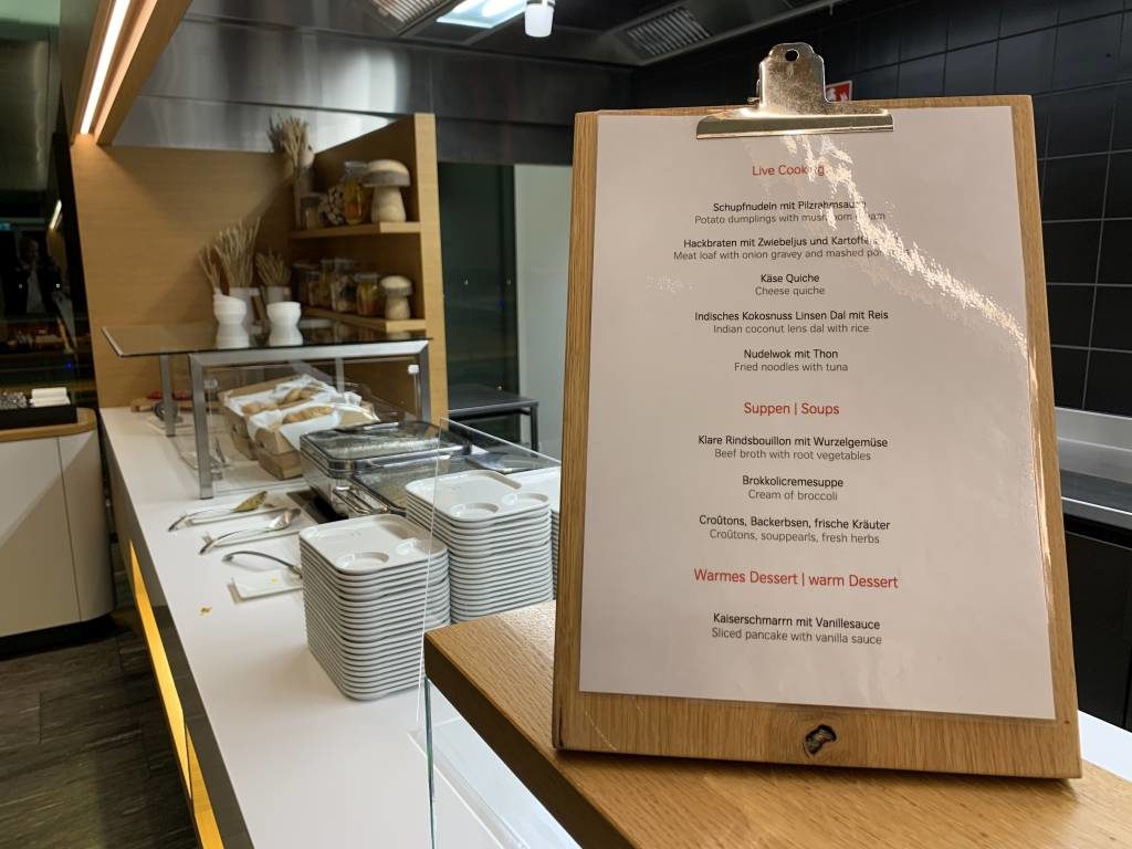 Das Essens-Angebot in der Swiss Senator Lounge E überzeugt. Insbesondere die Live-Cooking-Station macht eine positiven Eindruck.