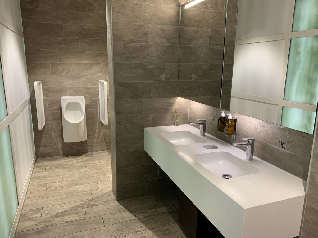 Auch in Zürich waren die Toiletten top sauber und sehr gepflegt. Hinter einer Milchglas-Schiebetür verbergen sich ausreichend WCs und Pissoirs, sowie diverse Waschtische. Die Duschen selbst befinden sich nicht bei den Toiletten sondern in der Nähe der Rezeption. Scheinbar gibt es nur zwei Duschen, die sich dann auch noch Business und Senator Lounge teilen.
