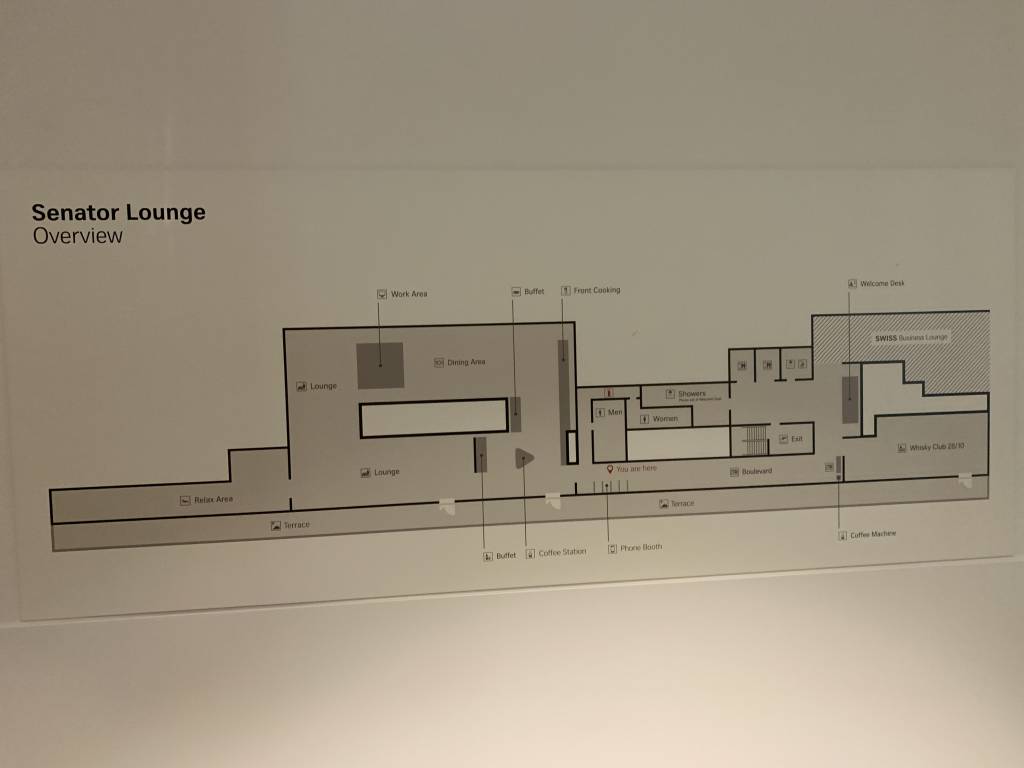 Plan der Swiss Senator Lounge bei den E-Gates.