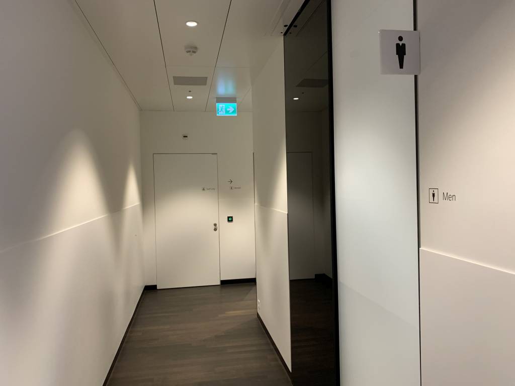 Auch in Zürich waren die Toiletten top sauber und sehr gepflegt. Hinter einer Milchglas-Schiebetür verbergen sich ausreichend WCs und Pissoirs, sowie diverse Waschtische. Die Duschen selbst befinden sich nicht bei den Toiletten sondern in der Nähe der Rezeption. Scheinbar gibt es nur zwei Duschen, die sich dann auch noch Business und Senator Lounge teilen.