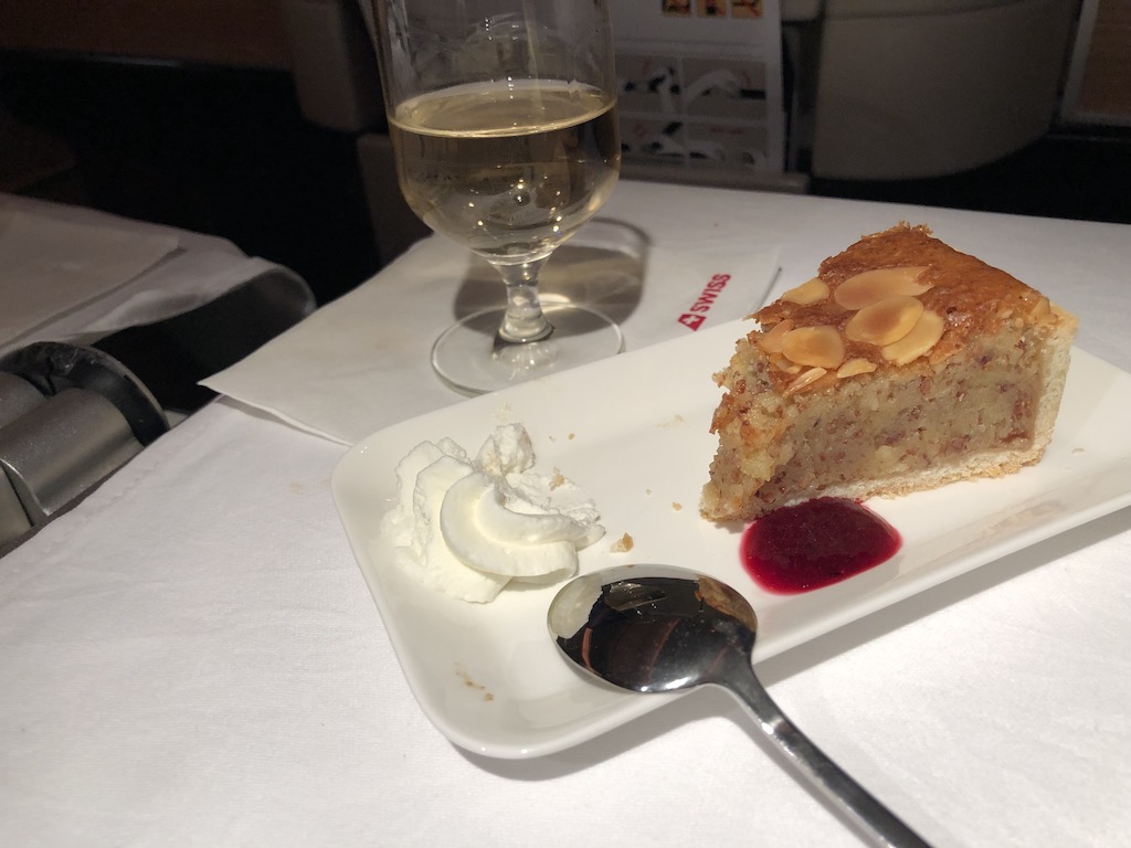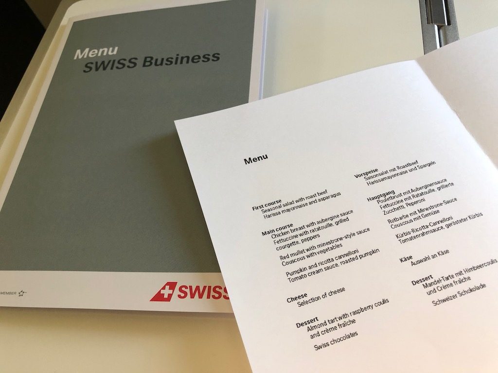 Bereits am Boden wurden Welcome-Drink und heisse Tücher verteilt. Nach dem Start kamen kleine Menükarten, die Crew legte zügig mit einem Aperitifservice mit Nüssen los. Es gab ein wenig Smalltalk mit den Flugbegleitern, ein langer Tag denn das Team flog am gleichen Tag von Zürich hin & zurück.