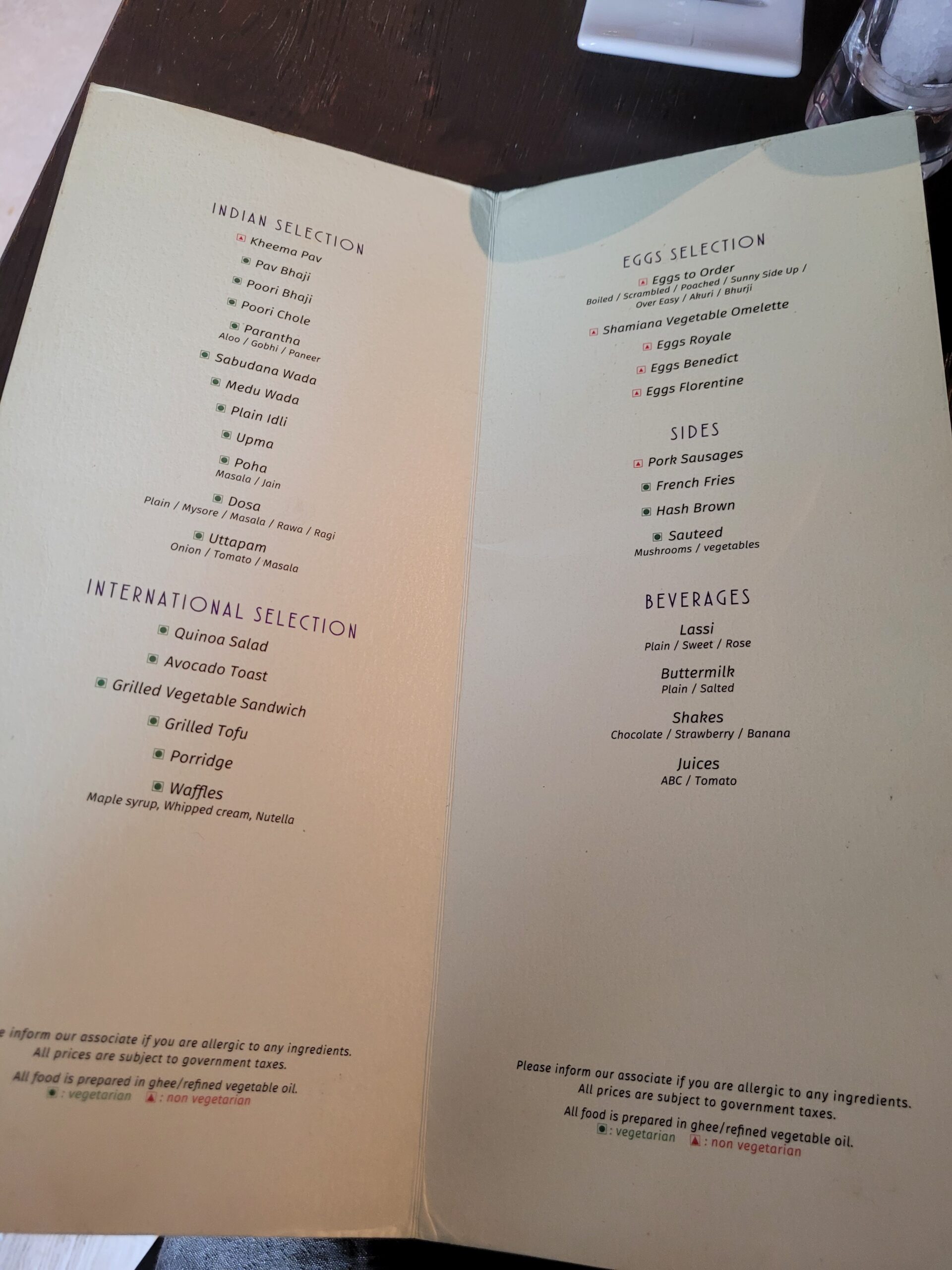 Das Frühstück konnte in Buffetform im Shamiana Restaurant eingenommen werden. Hier bestand neben dem Buffet auch die Möglichkeit Eierspeisen, Indisches und internationales Frühstück ohne Aufpreis zu ordern.