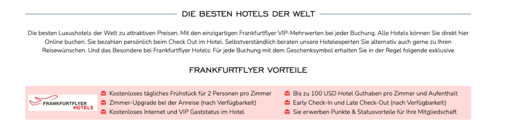 Das Hotel könnt Ihr übrigens mit tollen Vorteilen über das Frankfurtflyer Hotels Portal buchen. Hier seht Ihr welche Vorteile Ihr bekommen könnt: