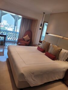 Das Hotel bietet verschiedene Zimmerkategorien im Palace und im Tower an, wobei ich ein Standardzimmer im Tower gebucht habe. Das Zimmer war ausreichend groß, sodass ich bequem alles unterbringen konnte und verfügte über einen kleinen Balkon mit Blick auf Colaba. Den Balkon mit Blick auf das Gateway of India lässt sich das Hotel noch besser bezahlen. Lediglich das Bad war verhältnismäßig klein.
