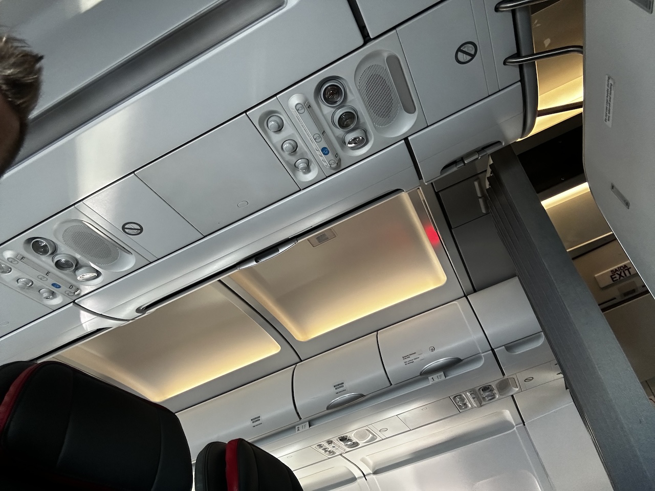 Am Gate drängelten sich schon die ersten Passagiere, das Boarding startete pünktlich, ein Bus brachte uns zur Aussenposition. Die ersten drei Reihen waren für die Business Class Passagiere vorgesehen, damit hatten dort maximal 12 Gäste Platz.