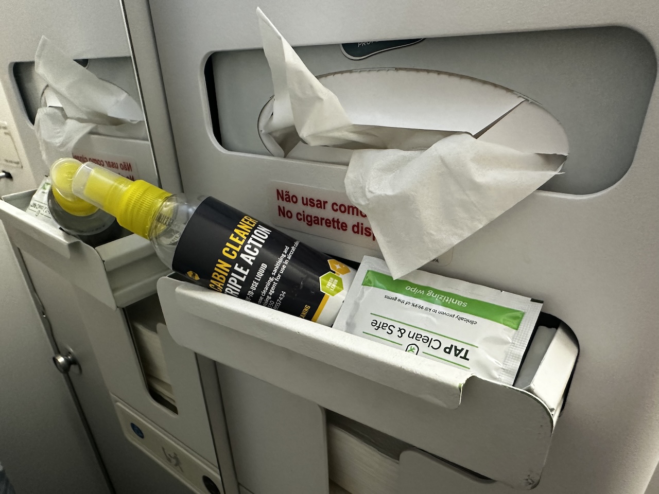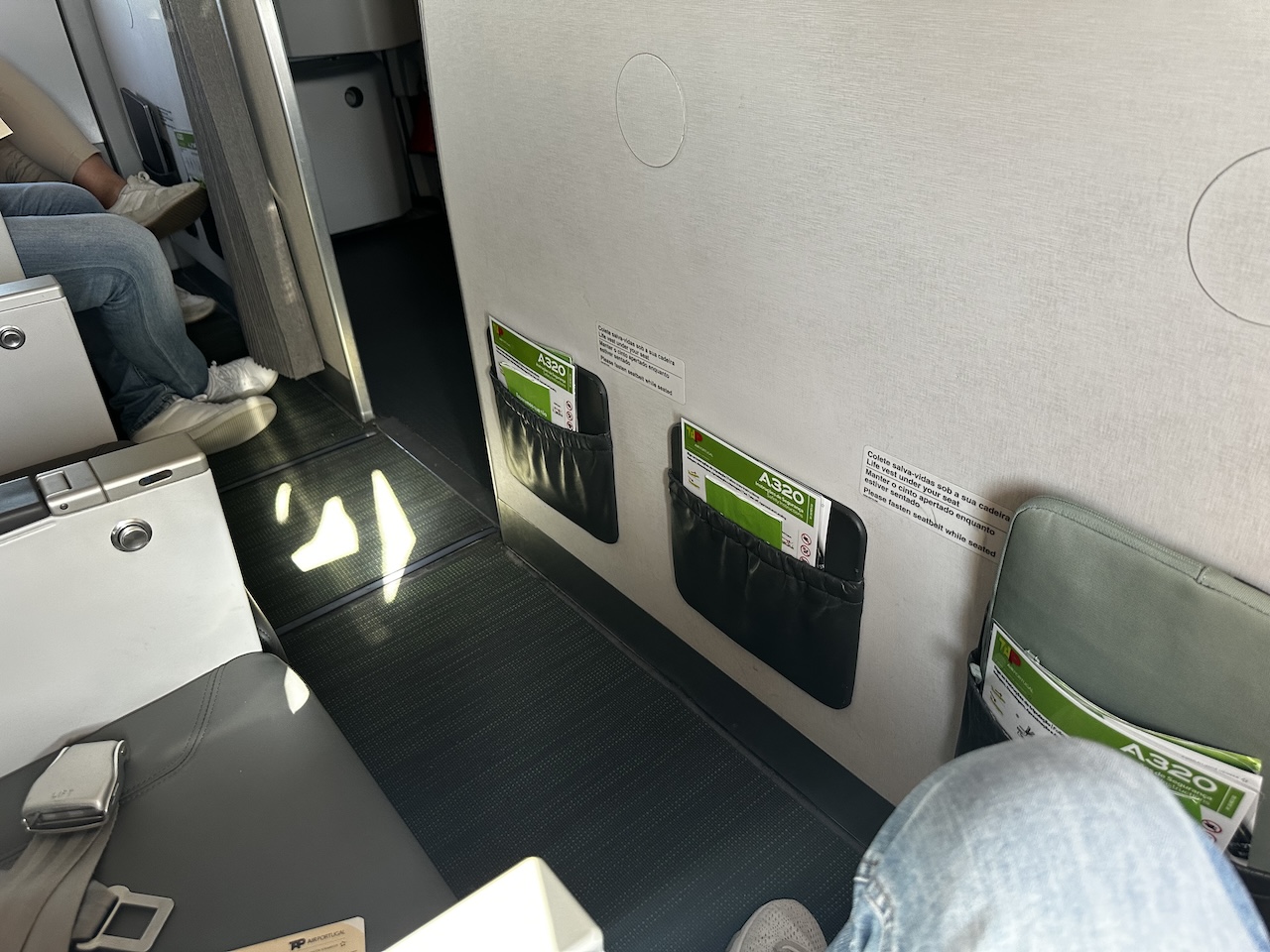 Ein kleiner Vorhang trennt den Gang zwischen den Klassen ab, Seitenteile waren nicht installiert. Hier Einblicke aus einer anderen Review, auf dem kurzen Flug von Faro nach Lissabon war es damals genau so: