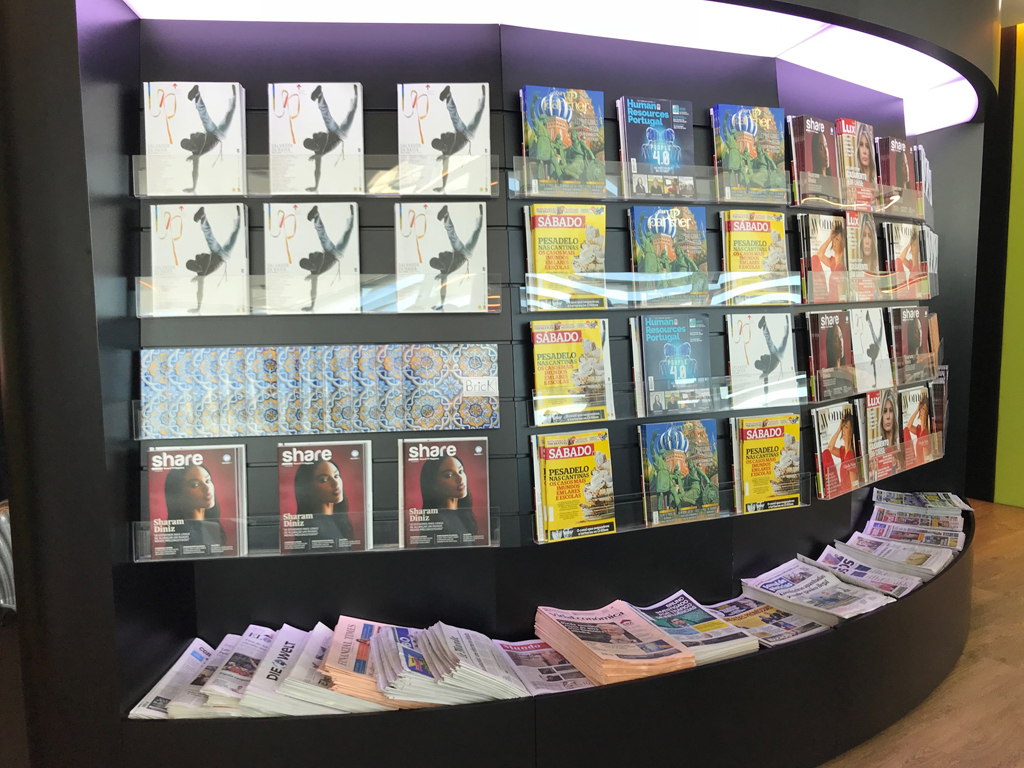 Direkt neben dem Eingang der Lounge befindet sich ein sehr großes Zeitungsregal mit diversen portugiesischen und internationalen Zeitungen. In einem kleinen abgetrennten Bereich finden sich einige Arbeitsplätze, mehrere davon sind auch mit Computern ausgestattet, die während des Aufenthaltes von den Kunden genutzt werden können. Ebenso stehen Drucker bzw. Kopierer zur Verfügung.