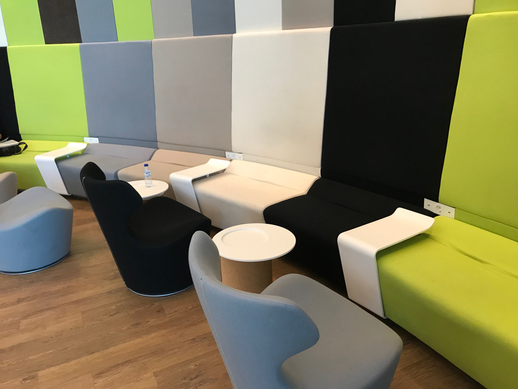Ansonsten ist die Lounge sehr lichtoffen gestaltet und liefert durch die direkte große Fensterfront zum Vorfeld hin eine sehr natürliche Atmosphäre.