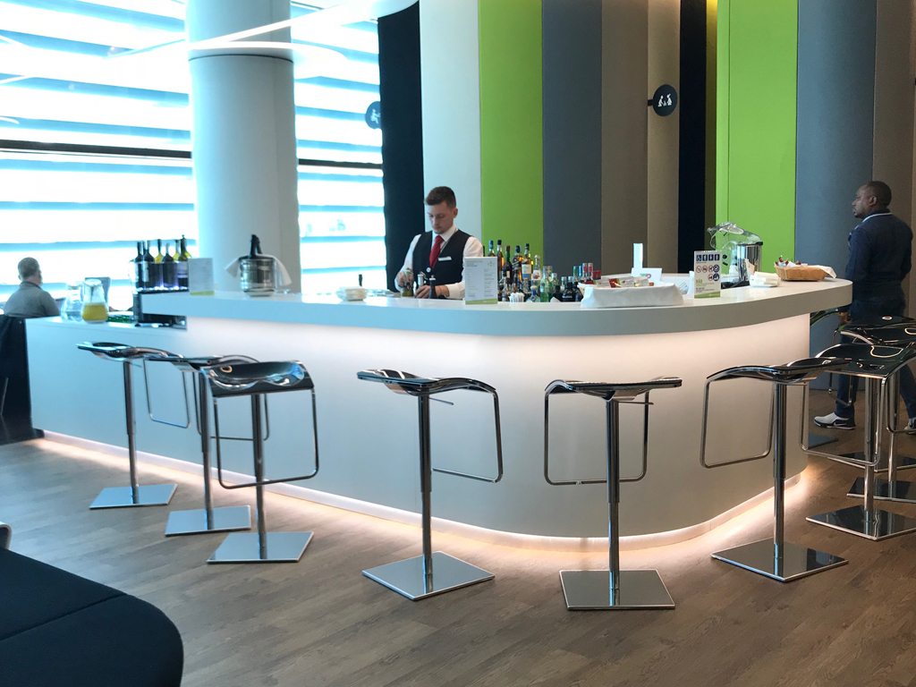 Die Lounge gefiel mir sehr gut und ich würde hier definitiv noch einmal einen längeren Aufenthalt einplanen. Das Angebot an Speisen und Getränken war sehr zufriedenstellend und auch zum Arbeiten ist die Lounge durch ein stabiles und schnelles WLAN sowie zahlreiche Steckdosen wunderbar geeignet. Nach einer Langstrecke gibt es zudem die Möglichkeit, in der Lounge eine Dusche einzunehmen.