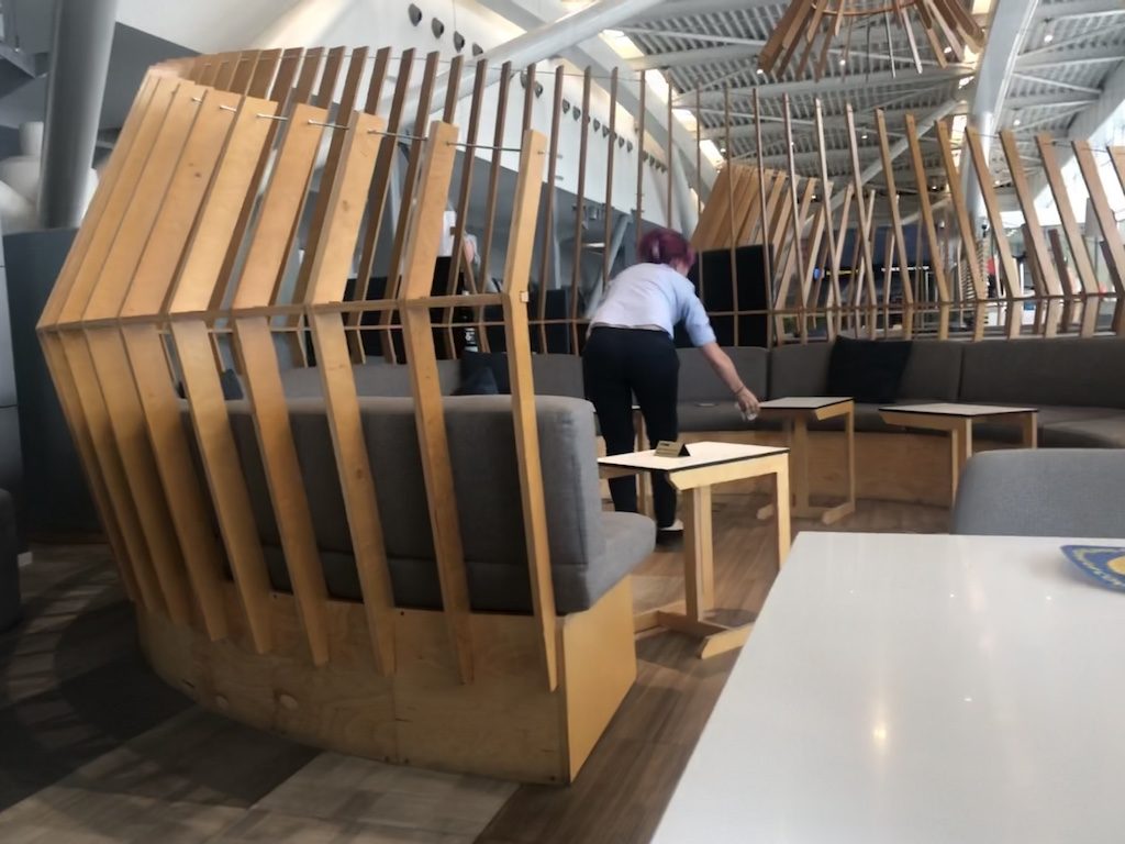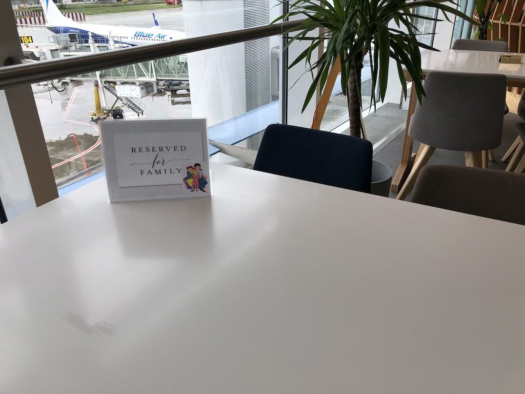 Einzelne Tische und Sitze waren sind für Familien reserviert, entsprechende Schilder weisen die Gäste darauf hin. Die Lounge war aufgeräumt und sauber, eine Mitarbeiterin war permanent damit beschäftigt einzelne Bereiche zu putzen.