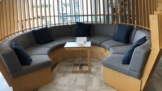 Es gibt mehrere Sofas in verschiedenen Größen, dabei sind die kleineren besser abgeschirmt und bieten etwas Privatsphäre. Die größeren eignen sich für Familien oder Gruppen und Gäste die gerne unter Leuten sind. Außerdem gibt es zahlreiche Tische mit Stühlen die sich sowohl zum Essen als auch zum Arbeiten eignen.