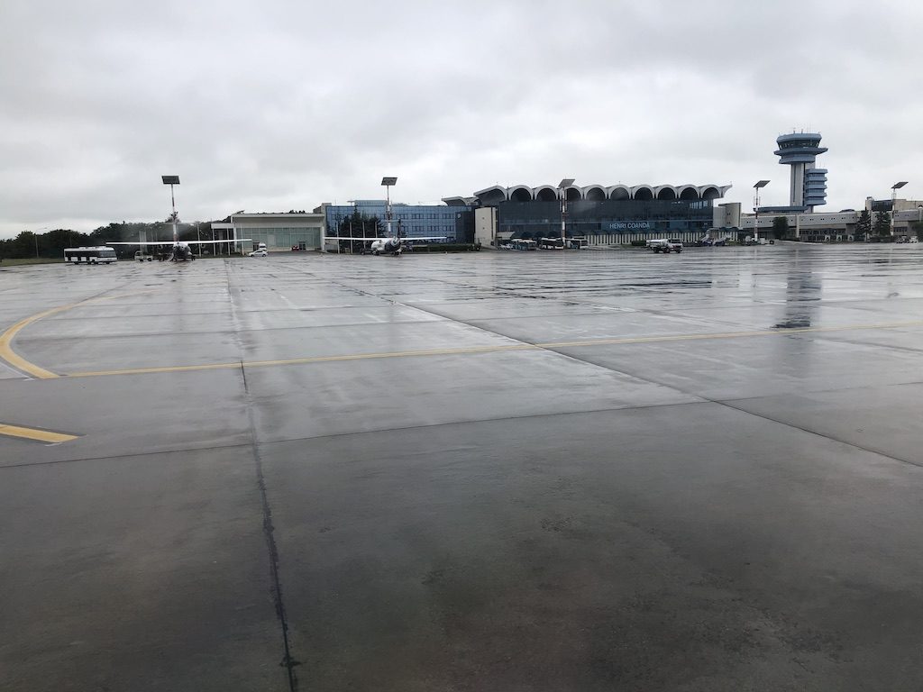 Überpünktlich sind wir auf dem verregneten Flughafen Otopeni gelandet. Der selbe Bus war zweimal unterwegs um die Passagiere zum Terminal zu bringen was zu etwas längeren Wartezeiten führte. Da bei der ATR bauartbedingt die hinteren Türen zum Ein- und Aussteigen verwendet werden, können die Passagiere der vorderen Reihen als Letztes das Flugzeug verlassen.