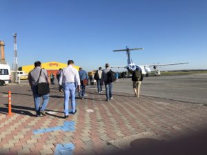 Die ATR 72-600 kam an diesen Morgen schon aus Bukarest und kurze Zeit später wurde der Flug aufgerufen. Alle Passagiere wurden in einen weiteren Raum auf dem Vorfeld gelotst. Als das Flugzeug gereinigt und zum Einsteigen bereit war, konnten so alle zügig boarden.