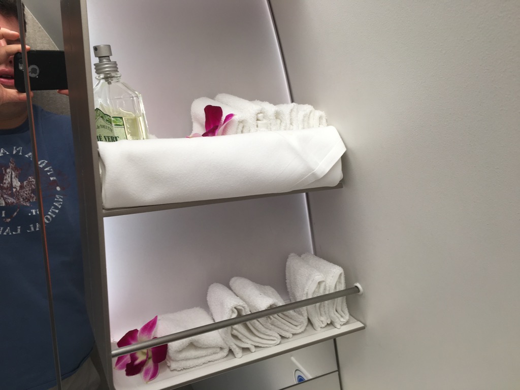 Ein wirklich schöner Touch waren die Orchideen und Stoffhandtücher in den Bädern. Handcreme und ein Parfüm waren das einzige Amenity, welches in den Bädern bereitstand.