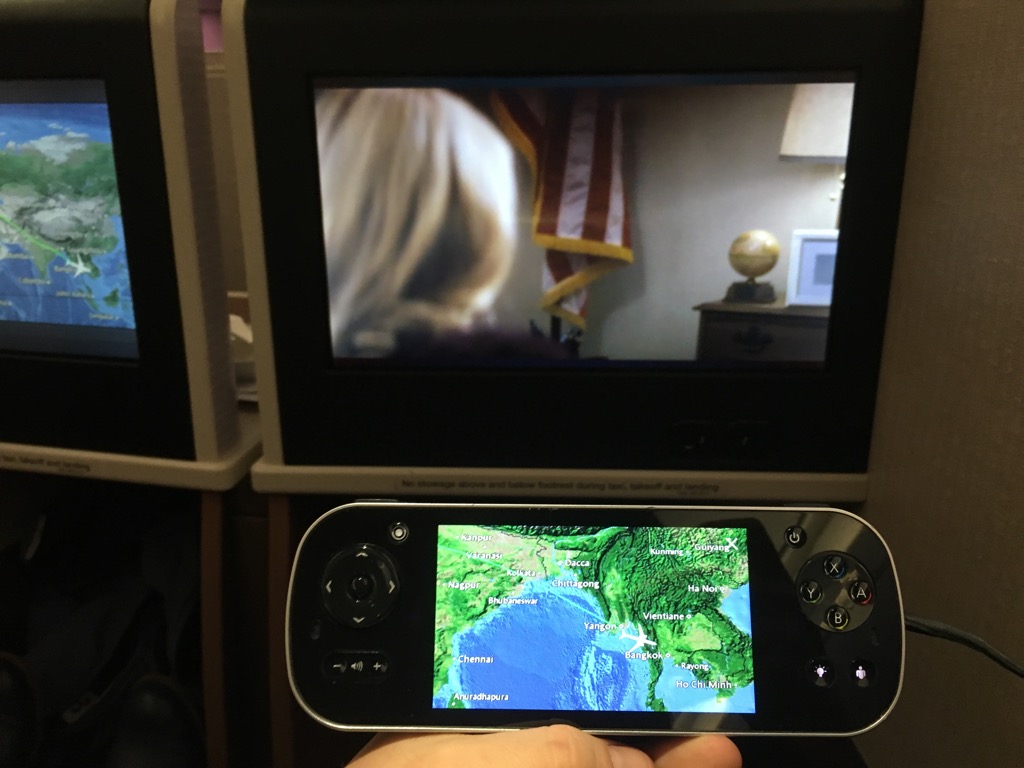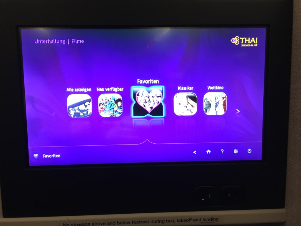 Überraschend groß war die Auswahl im IFE. Neben vielen aktuellen Filmen und Serien, gab es auch eine Reihe von Spielen, Musik und natürlich eine Moving Map. Interessanterweise waren viele Filme in einer Reihe von Sprachen verfügbar, inkl. vielen Titeln auf Deutsch.