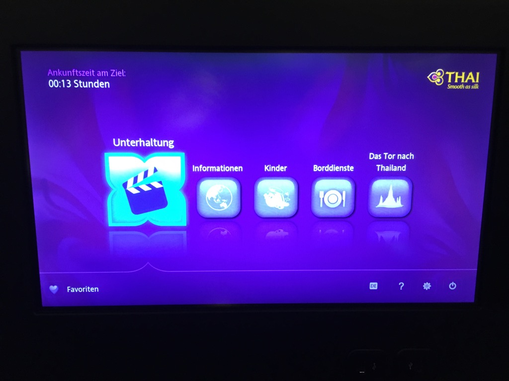 Nachdem ich nun gestärkt war, verbrachte ich die letzte Hälfte des Fluges damit ein wenig zu arbeiten und das IFE zu nutzen. Thai gibt allen Business Class Passagieren im Airbus A350 einen 5MB Voucher für das WIFI. Dies ist zwar eine nette Geste, allerdings kommt man hiermit natürlich nicht weit. Das WIFI kann man anschließend in verschiedenen Datenpaketen kaufen. Mit 35 US$ für 100MB ist es allerdings eher teuer.
