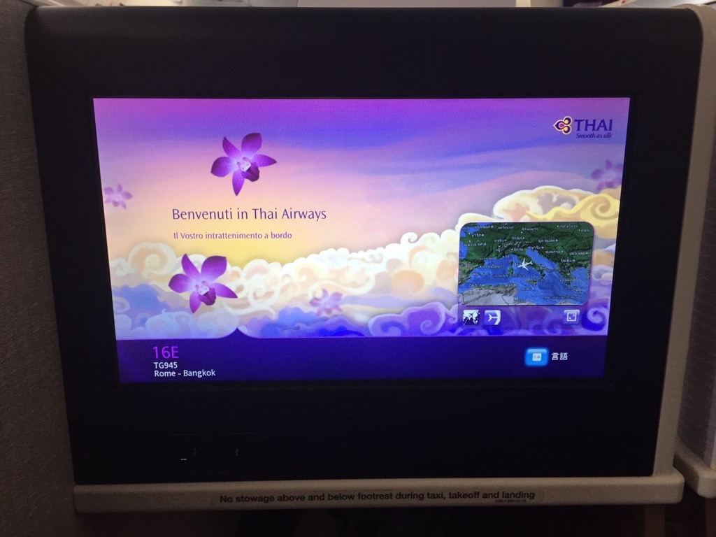 Mit einer Verspätung von 10 Minuten hat dann auch das Boarding begonnen. Dies war, wie man es von Rom gewohnt ist, recht chaotisch. An der Seite des Gates wurde eine Tür für Preboardings und Business Class Passagiere geöffnet, so dass wir doch recht zügig in unseren Thai Airways A350 einsteigen konnten.