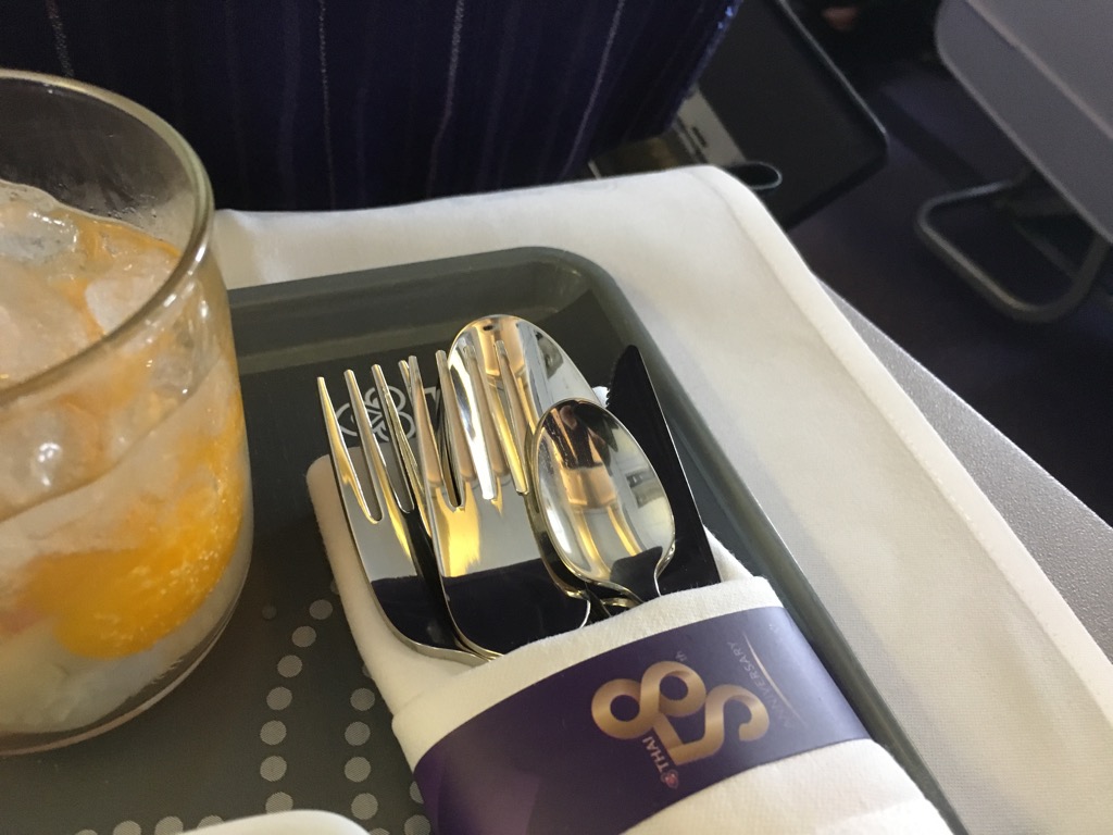 Auch wenn es natürlich beeindruckend war, dass Thai auf dem kurzen Flug ein warmes Essen serviert, war ich von der Qualität des Essens weniger begeistert. Ein Teller mit kalten Speisen, so wie es bei Lufthansa serviert wird, hätte mir hier besser gefallen.