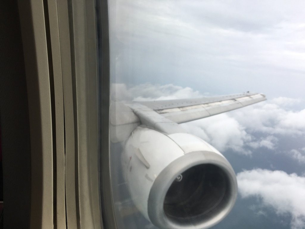Der Start erfolgte dann auch recht zügig und lustigerweise ist in diesem Moment meiner Frau aufgefallen, dass das Flugzeug und besonders der Flügel erstaunlich alt/schmutzig war.